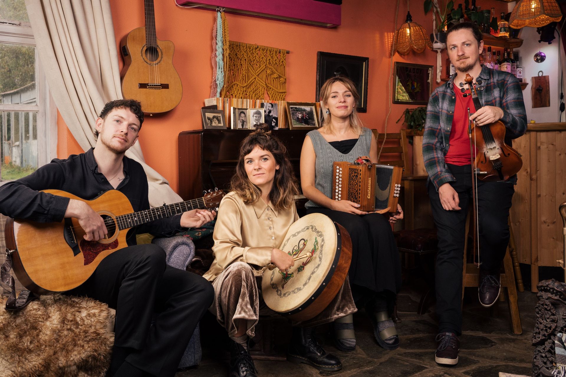 Die Singer-Songwriterin Eva Coyle besitzt eine Stimme von außergewöhnlichem Timbre – sanft, doch kraftvoll, berührend und zugleich erfrischend. Wie der Morgentau, der sich auf Blätter legt, kühlt und belebt ihr Gesang die Sinne. Wenn sie ihre Texte ins Mikrofon haucht – eine kunstvolle Balance zwischen Realität und Fiktion – entfaltet sich eine Magie, die das Publikum in ihren Bann zieht. Besonders eindrucksvoll ist ihr Spiel am Keyboard, mit dem sie ihre Stimme meisterhaft begleitet. Doch sie ist auch eine Akkordeonistin, die bei den Instrumentals so richtig in die Tasten greift. Doch Eva blickt musikalisch über Irlands Grenzen hinaus: Ihre Vorliebe für die skandinavische Folktradition verleiht manchen Arrangements eine nordische Erdigkeit, die ihre Musik noch facettenreicher macht. Ein Sound, den man nicht mehr loslassen will. Ein Sound, der einen nicht loslässt. Ihr Quartett kreiert einen Klang, der sich anfühlt wie eine wohlige Wärm_ asche an kalten Wintertagen – ein Sound, den man an sich drückt und nicht mehr hergeben mag. Stilistisch eher „folky“ als streng traditionell, doch unverkennbar irisch. Gleichzeitig bringt die Band mit einem Drummer ordentlich Druck auf die Bühne, sodass sich der folkige Sound tanzbar und poppig entfaltet.