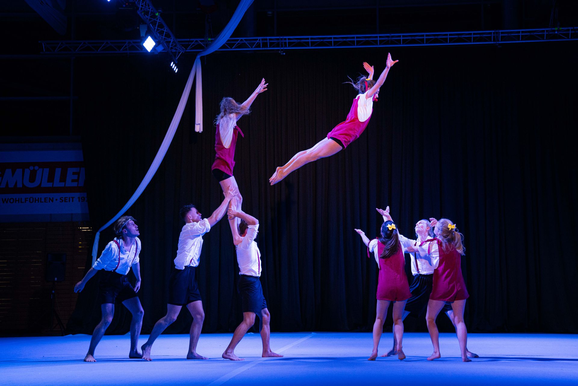 Studierende des Instituts für Sportwissenschaft der Universität Augsburg und befreundete Gruppen bieten ein abwechslungsreiches Programm aus Vertikaltuchartistik, Partnerakrobatik, Tanz, Rhythmischer Sportgymnastik, Zirkuskünsten und vielem mehr. Die Artisten verzichten auf ihre Gage und spenden diese zu 100% an einen guten Zweck.