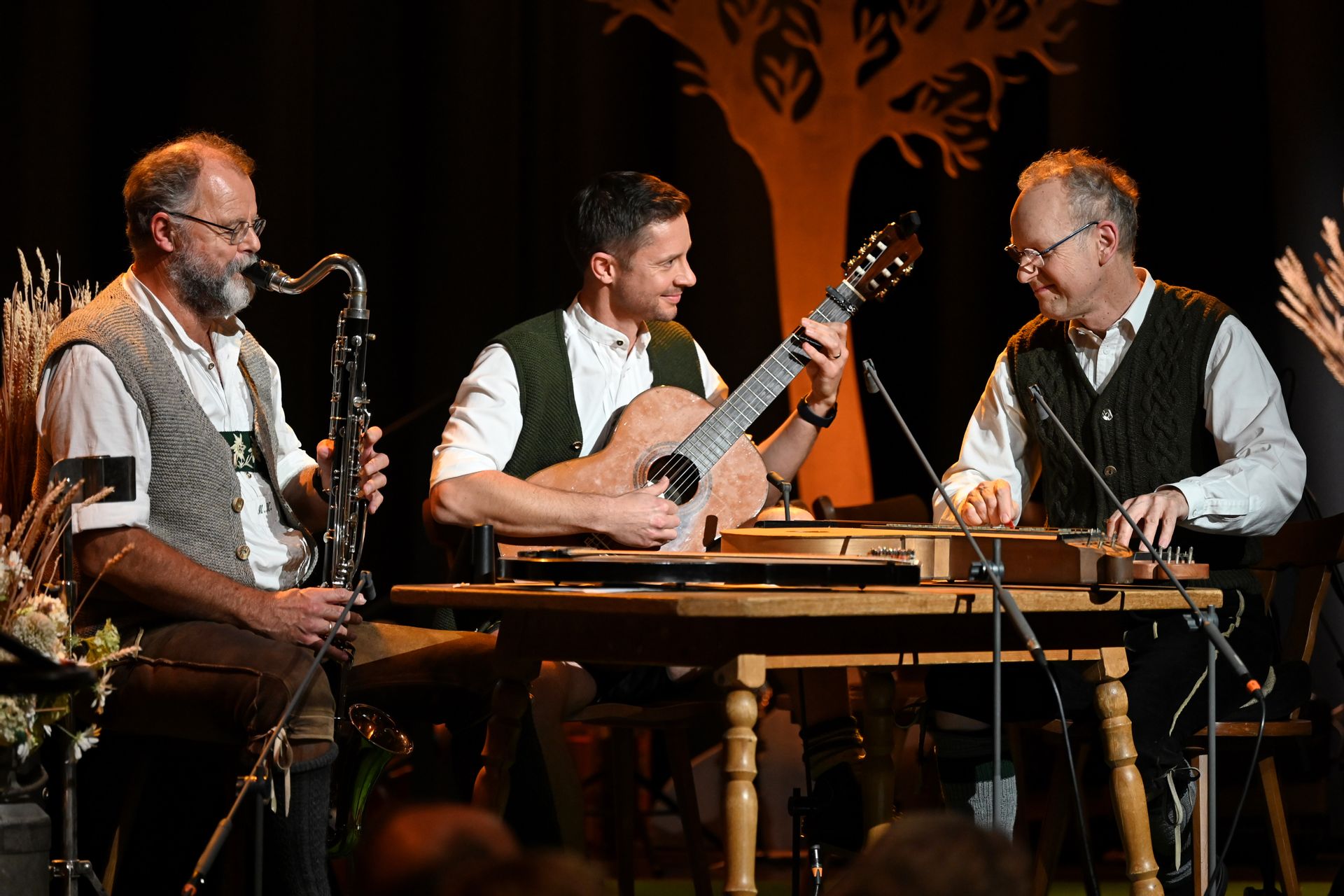 Die große Vielfalt traditioneller Klänge gibt es zu entdecken, wenn sich Sänger und Musikanten aus dem Allgäu, Oberbayern, Mittelschwaben und Württemberg zu den Schätzen der Volksmusik treffen. Mit dabei sind Martin und Sebastian Kern mit Martin Kerber, die Gitarren, Zithern und Scherrzither feinste Saitenklänge entlocken, der Glonnauer Dreigsang mit zarten und frechen Lieder sowie das Turmbläserensemble Altstetter mit festlicher Blechbläsermusik. Ein besonderes Hörerlebnis wird es, wenn das Duo Akleja mit der schwedischen Nyckelharpa Tanzmusik aus alten Notenbüchern zu neuem Leben erweckt.